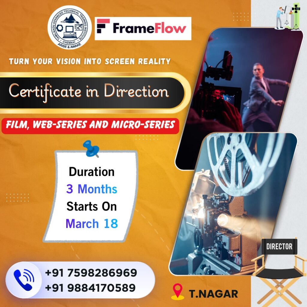 Step into the world of visual storytelling with our 3-Month Intensive Certificate in Direction, designed for aspiring directors, assistant directors, content creators and filmmakers who want to master direction across Cinema, Web-Series and Micro-Series.