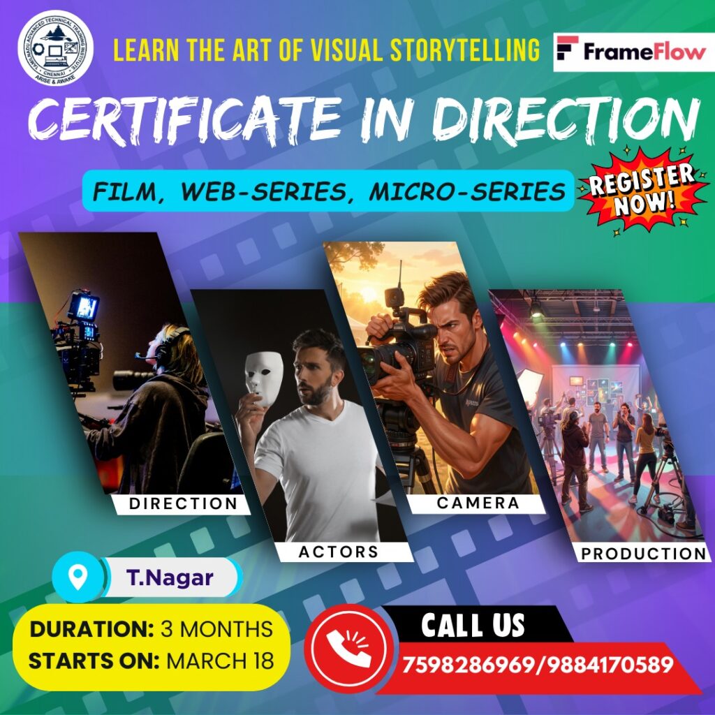 Step into the world of visual storytelling with our 3-Month Intensive Certificate in Direction, designed for aspiring directors, assistant directors, content creators and filmmakers who want to master direction across Cinema, Web-Series and Micro-Series.